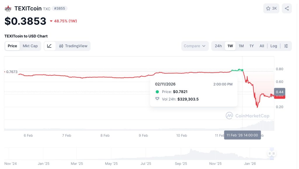 Coinciding with another drop in value of almost 50%, the C&D order comes after the price of TEXITcoin has already collapsed since reaching a high of $6.35 in September of last year, hovering below or near $1 for the past month.